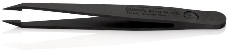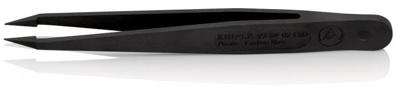 Пинцет углепластиковый ESD, 115 мм, гладкие прямые игловидные губки KNIPEX 92 09 02 ESD KN-920902ESD