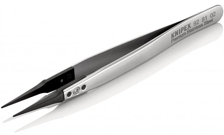 Пинцет ESD гладкие прямые заострённые губки KNIPEX 92 81 02 KN-928102