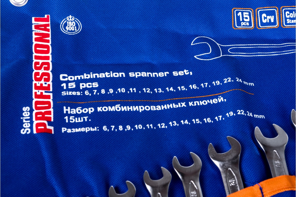 Ключи комбинированные: 6, 7, 8, 9, 10, 11, 12, 13, 14, 15, 16, 17, 19, 22, 24 мм.