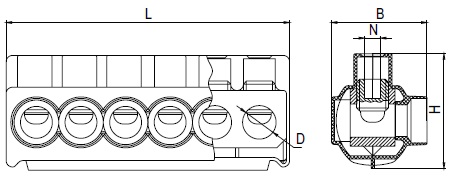 | Число портов | L | B | H | D | N | Длина снятия изоляции (мм) min | Длина снятия изоляции (мм) max |