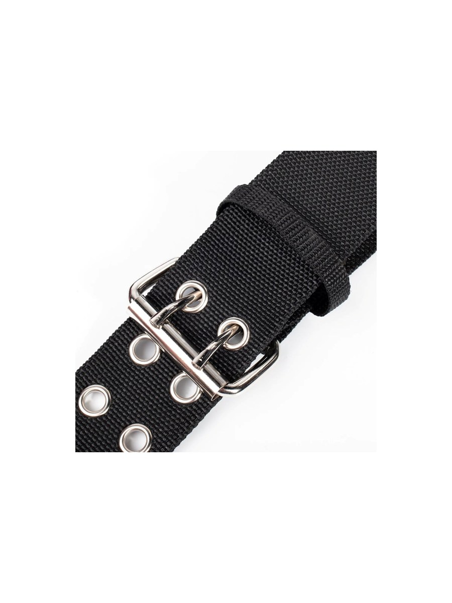 - Прочный двухрядный пояс с мощной металлической пряжкой и металлической окантовкой отверстий