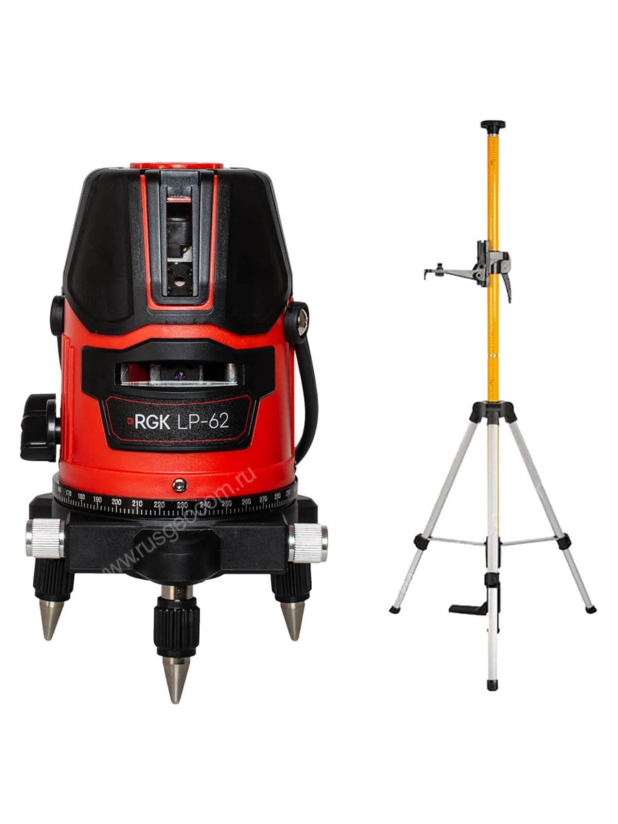 Комплект: лазерный уровень RGK LP-62 + штанга-упор RGK CG-2