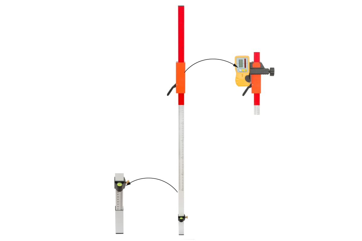 Телескопическая рейка высотой 2.4 м. значительно упрощает проведение таких операций, как измерение перепадов высот, вертикальную планировку и обмер перед устройством фундамента, наливного пола, разбивку лестниц и др. Этот прибор позволяет работать в одиночку, без помощника и избавляет от необходимости лишних расчетов - все относительные отклонения при переходе от одной точке к другой определяются с точностью до миллиметра.