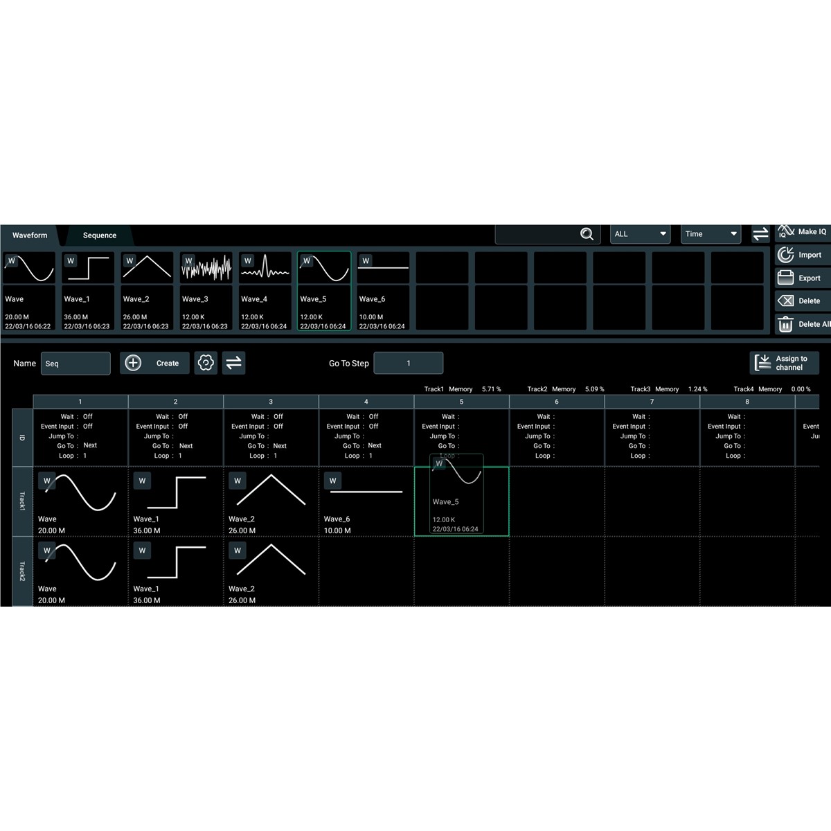 Программная опция MDG70000-SEQ создания сложных сценариев формирования последовательностей сигналов с использованием команд циклов, условного и безусловного переходов – Lоор, Go To, Wait, Event Jump To. Максимальная длина последовательности – до 16 384 шагов. Управление созданными сценариями.