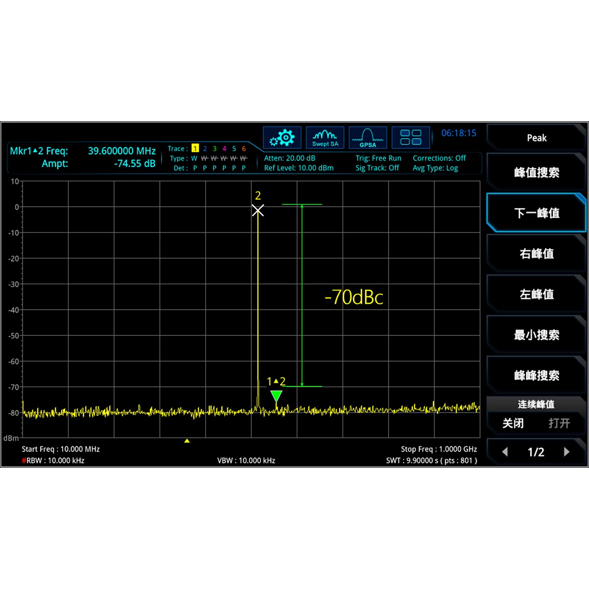 Динамический диапазон, свободный от паразитных составляющих: -70 дБс