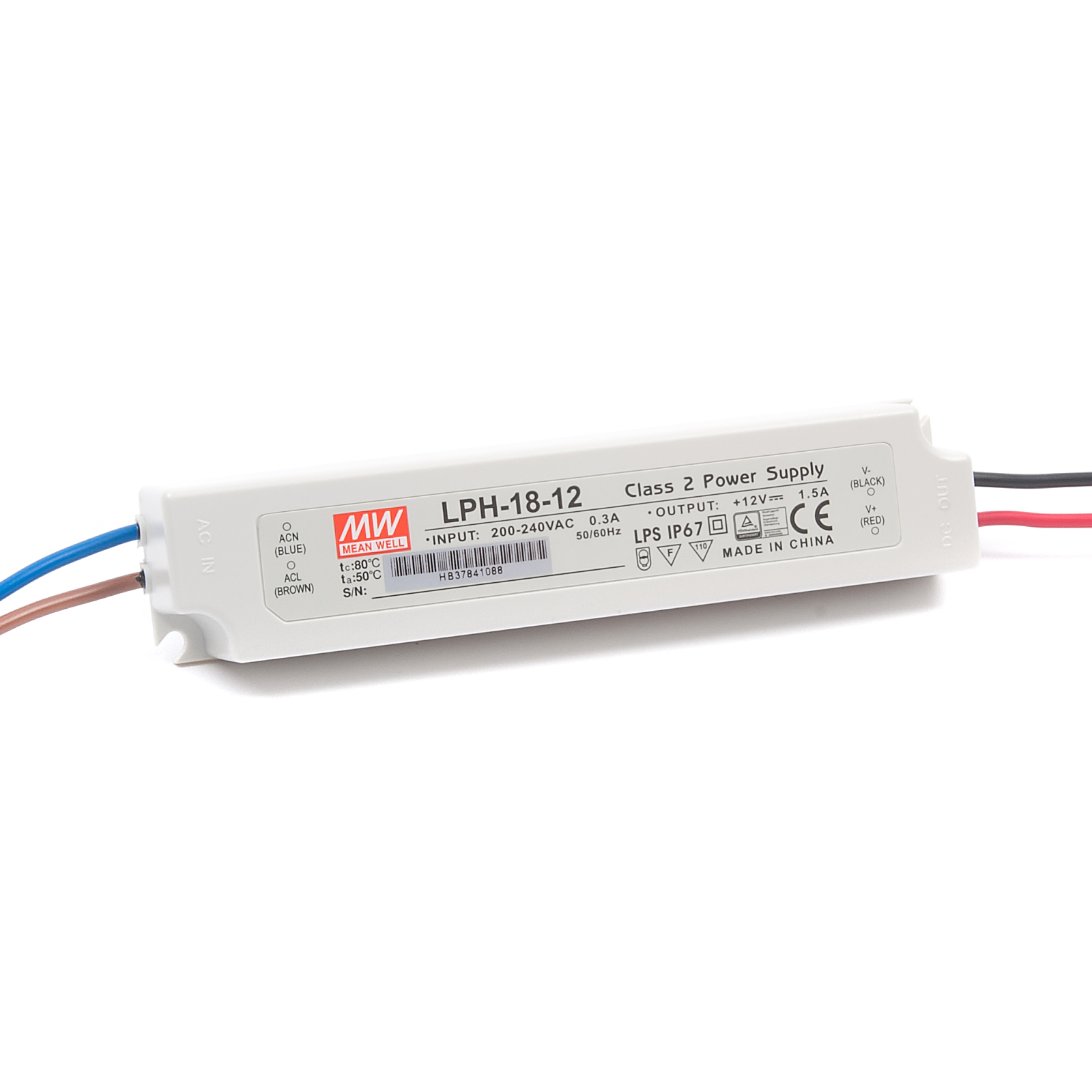 AC-DC, 18Вт, IP67, вход 90…132В AC, выход 24В/0,75A,изоляция 3000В AC, в кожухе 140х30х20мм, -30…+70°С