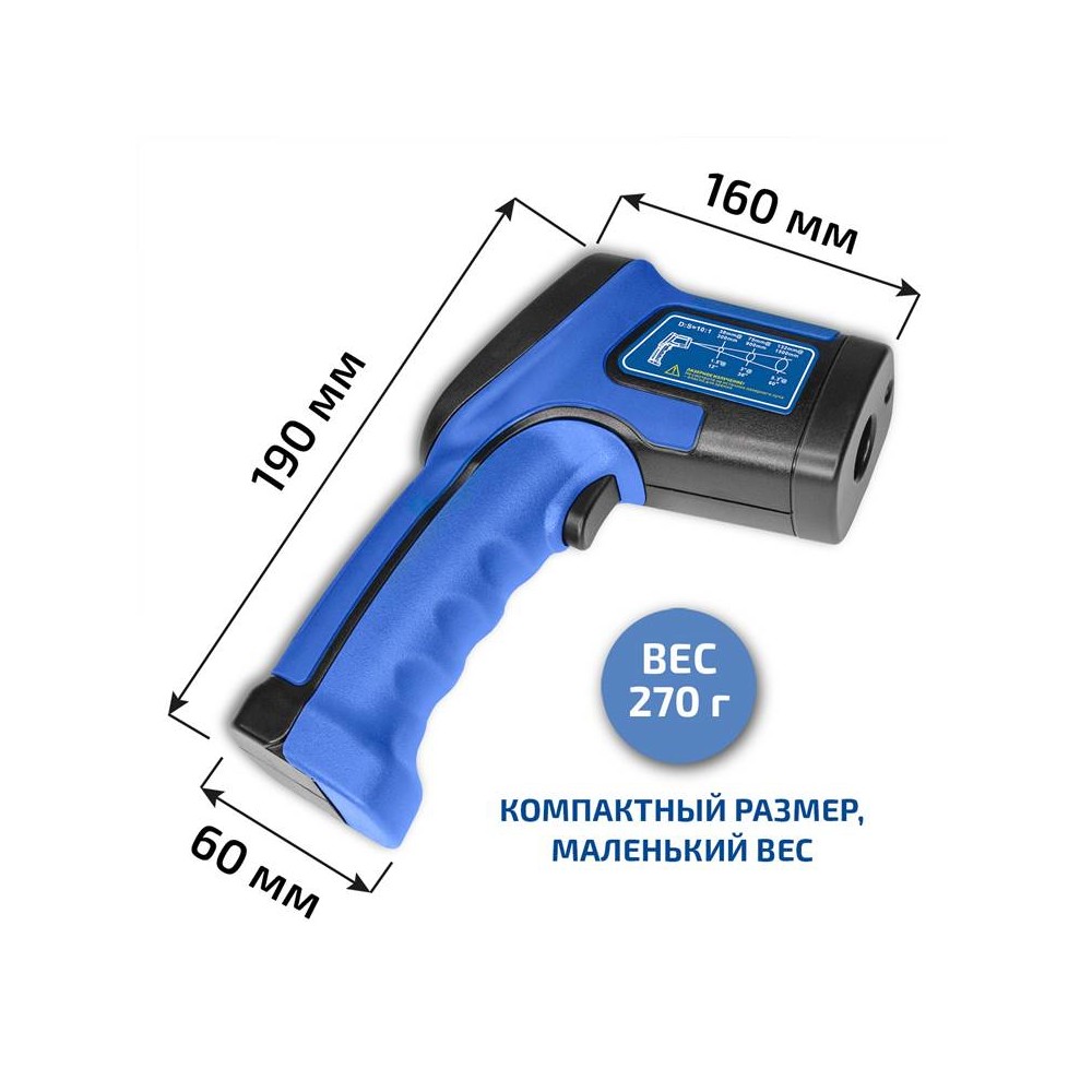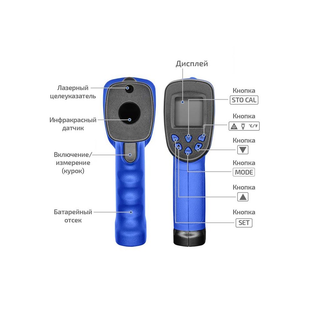 - Удобная рукоятка и кнопка измерения