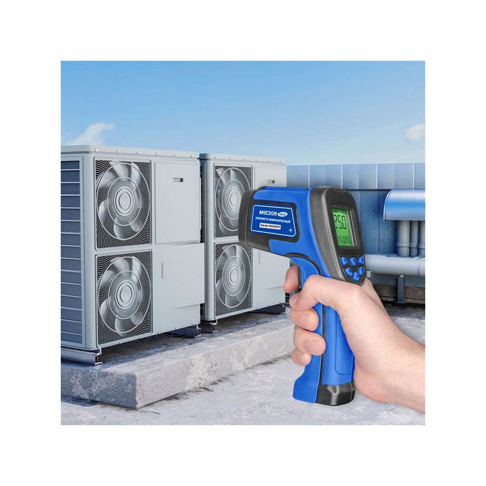 МЕГЕОН 16630 – это компактный бесконтактный инфракрасный термометр (пирометр). Внесён в ГРСИ под №96682-25. Главным достоинством прибора является возможность бесконтактного (дистанционного) измерения температуры объекта. Это свойство широко используется в тех случаях, когда необходимо измерить температуру движущегося, опасного или горячего объекта, в труднодоступном месте или удалённого объекта. Стоит отметить, что все элементы управления расположены на лицевой панели прибора, благодаря этому пользоваться пирометром очень просто. Имеется возможность настройки коэффициента излучения (EMS). С целью упрощения проведения замеров был применён лазерный целеуказатель. Для экономии заряда батарей прибор оснащен функцией автоматического отключения при длительном простое. Также присутствуют такие функции как измерение максимального, минимального, среднего, дифференциального, больше чем и меньше чем значений. Запись измерений в память 12 ячеек. Поставляется в удобном пластиковом кейсе для хранения и транспортировки. Оборудование без сомнения найдет применение в промышленности и быту. Прибор станет незаменимым помощником и удовлетворит требования даже самых искушённых специалистов.