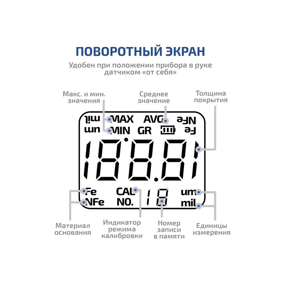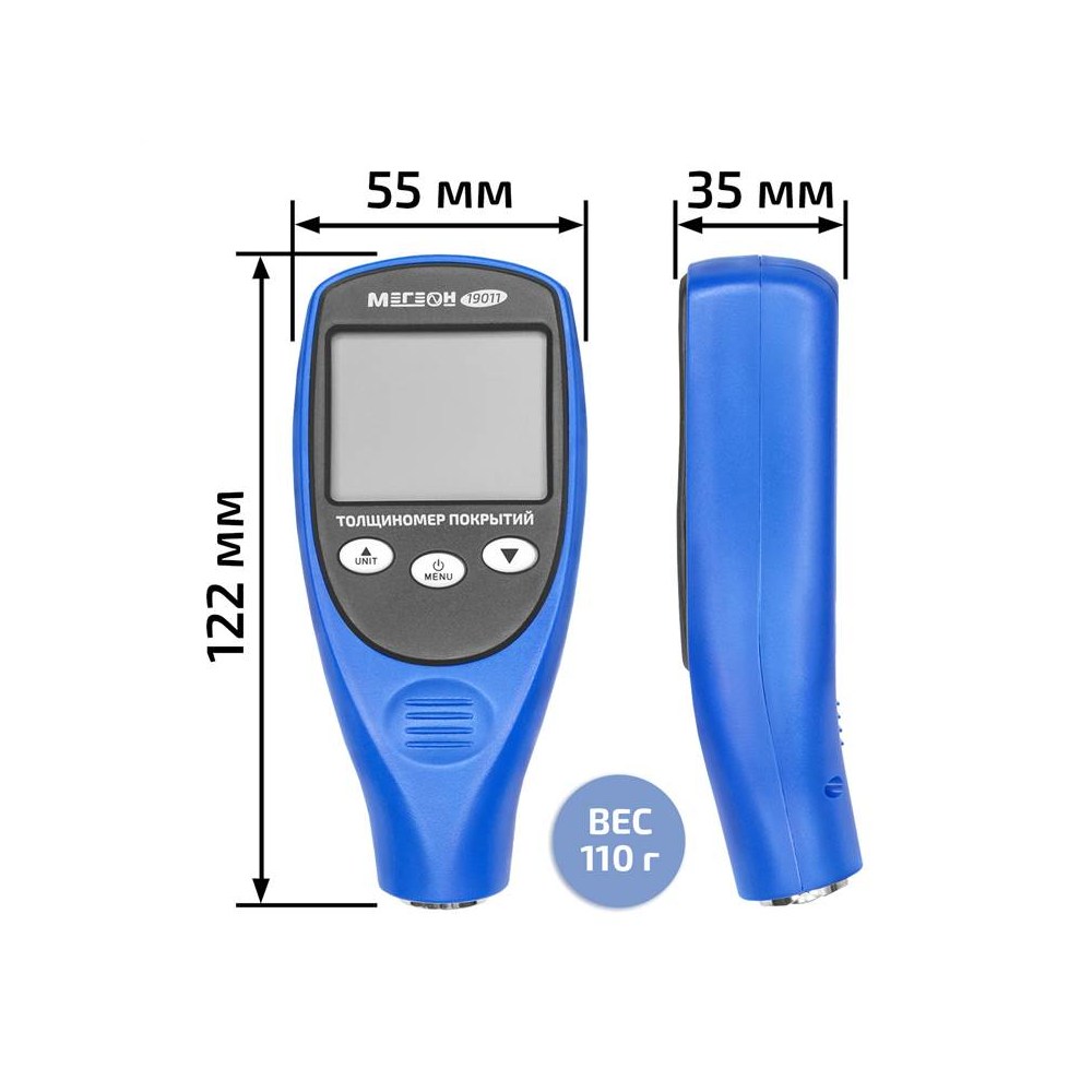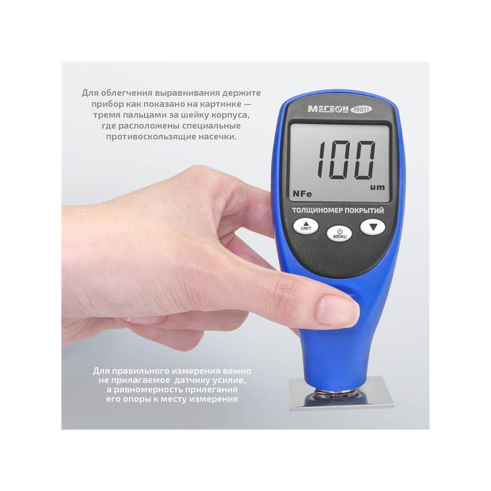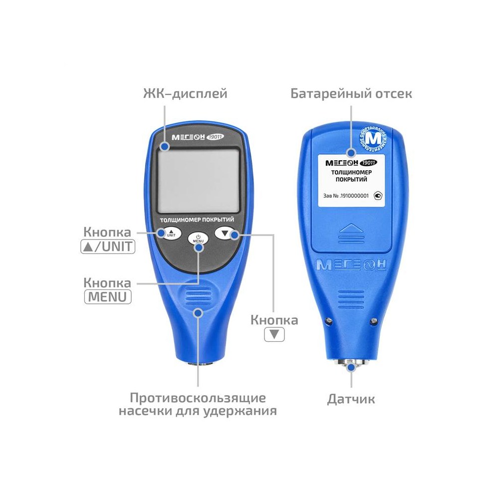 Толщиномер покрытий МЕГЕОН 19011 предназначен для измерения толщины лакокрасочных, полимерных, цинковых, медных и других покрытий на основаниях из чёрных и цветных металлов. В приборе комплексно реализовано два метода измерения – электромагнитный и вихретоковый. Выбор режима выполняется автоматически в зависимости от типа металла под покрытием – ферромагнитного или неферромагнитного. Первым включается электромагнитный режим, а при отсутствии в пределах видимости ферромагнитного материала прибор переключается на вихретоковый режим для обнаружения неферромагнитного основания. В обоих случаях толщиномер измеряет расстояние от датчика до металлического основания. С его помощью можно измерить: На железе – толщину слоя диэлектрика, токопроводящего немагнитного материала или их суммарную величину при комбинированном нанесении. Например, слой цинка на неокрашенном кровельном железе или общую толщину цинка с дополнительно нанесённым полимером. На цветных металлах – толщину покрытия из диэлектрических материалов. К примеру, слой краски на алюминиевом листе. Список можно дополнить полиэтиленовой плёнкой, фольгой, скотчем, бумагой и другими тонкими немагнитными материалами при наложении их на подходящую подложку. Результаты отображаются на контрастном жидкокристаллическом дисплее, сохраняются в память для последующего анализа и обрабатываются функциями вычисления максимального, минимального и среднего значений. Для повышения точности в программном обеспечении предусмотрена пользовательская калибровка по 6 точкам или по своему образцу, а в комплекте поставляется калибровочный набор. Толщиномер МЕГЕОН 19011 может успешно применяться для контроля качества окраски металлоконструкций на производстве и в строительстве, для поиска следов ремонта кузовных деталей при оценке автомобилей и во многих других сферах.