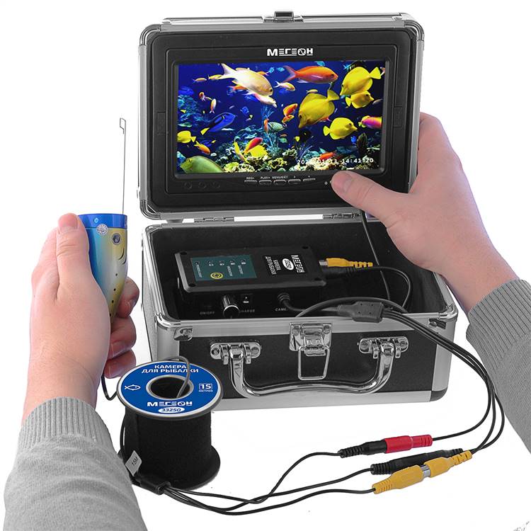 МЕГЕОН 33250 – новинка в модельном ряду любительских камер для наблюдения за обитателями всех видов водоёмов. К особенностям можно отнести: соединительный провод длиной 15 метров, возможность записи фото и видео в реальном времени. Подсветка имеет 12 ярких светодиодов с функцией регулировки интенсивности света, что в свою очередь позволяет использовать прибор в замутнённой воде с низким уровнем прозрачности, а также в тёмное время суток. А чтобы не отпугивать рыбу, применена регулируемая инфракрасное освещение состоящее также из 12 ИК-диодов. Дополнительно на корпусе предусмотрены крепёжные элементы для установки кормушки и рыболовной оснастки. Всё происходящее перед объективом отображается на цветном мониторе диагональю 7 дюймов с антибликовым козырьком. Помимо просмотра в реальном времени, полученные данные можно сохранить карту памяти SDHC, чтобы в последствии смонтировать ролик для блога или в качестве учебного пособия. Транспортировка и хранение осуществляется в ударопрочном кейсе, в который помещается весь комплект. Не упустите шанс понаблюдать за жителями подводного царства, теперь их мир станет ближе и откроет свои тайны.