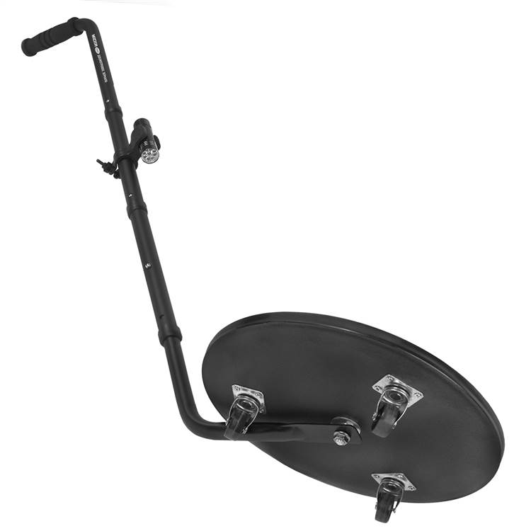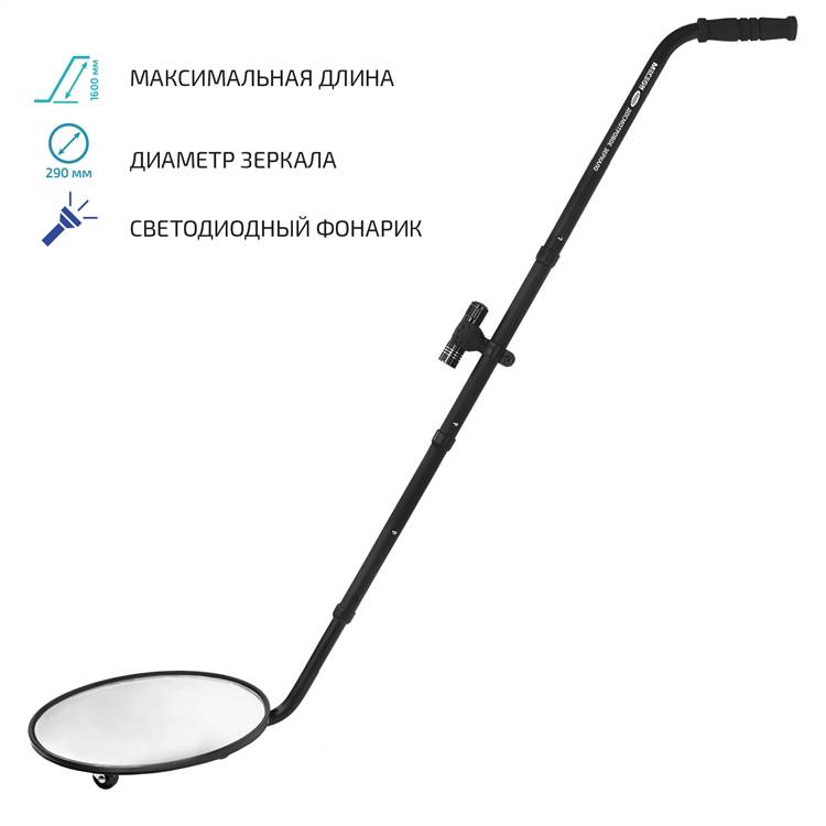 МЕГЕОН 46001- это досмотровое зеркало с удлиняющейся рукояткой, предназначенное для осмотра транспортных средств на контрольно-пропускных пунктах, пограничных участков и учреждений закрытого типа. Будет необходимо тем, чья деятельность связана с осуществлением инспекции труднодоступных мест автомобилей и скрытых от прямого взгляда полостей. Инструмент состоит из сферического зеркала с высокой отражающей способностью диаметром 290 мм на трёх рояльных колёсах и телескопической рукоятки, которая имеет надставную конструкция из стали, состоящую из четырёх секций с быстросъёмными и надёжными механизмами фиксации. При необходимости одно или два колена могут быть удалены и тем самым уменьшены размеры стойки. Изделие станет незаменимым помощником сотрудников силовых структур и пограничников, также найдёт применение в автосервисах и технических станциях.