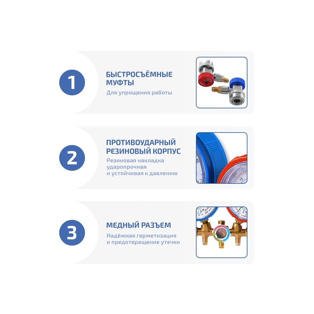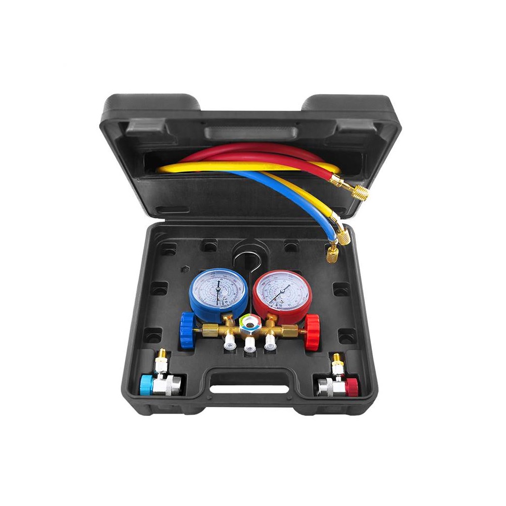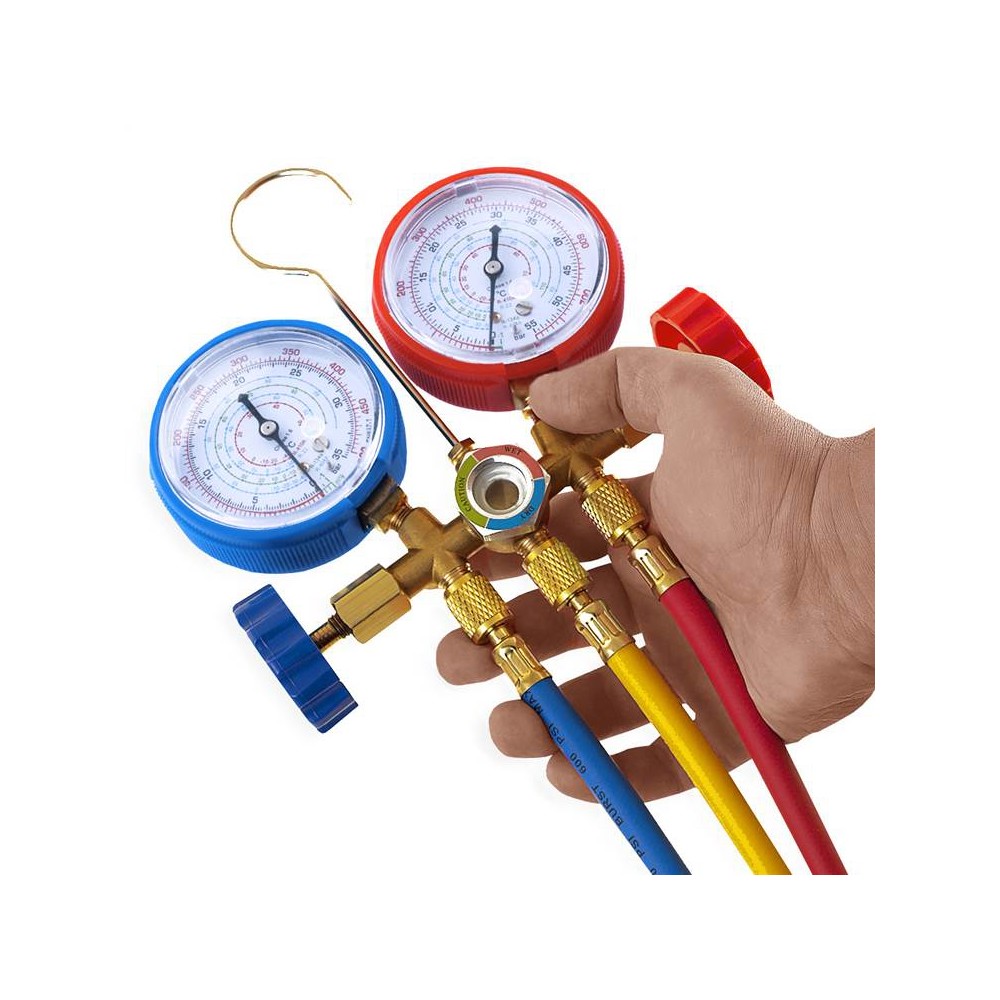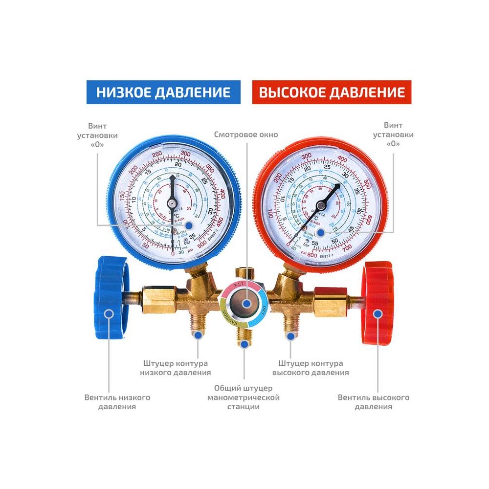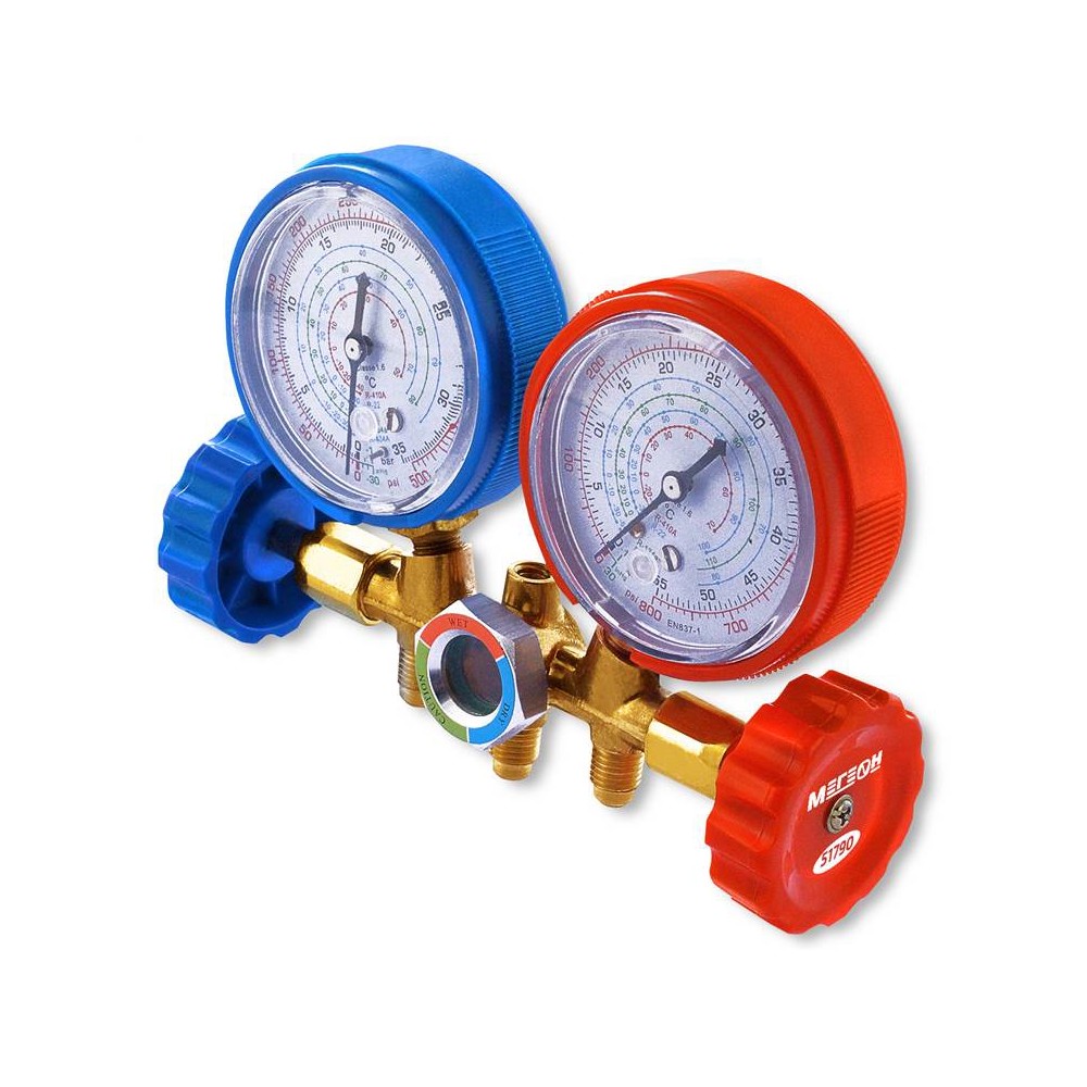МЕГЕОН 51790 - это манометрическая станция (коллектор), имеющая два манометра, 2 вентиля, три штуцера и смотровое окно. Представляет собой измерительный прибор, предназначенный для полного цикла техобслуживания. Позволяет одновременно измерять давление в обоих контурах, проводить вакуумирование, заправку и дозаправку хладагентом. Для удобства на шкалах нанесены температуры кипения хладагентов R22, R134a, R404a и R410a. В комплекте имеется крючок для подвешивания и быстросъёмные муфты. В дополнение к ней идеально подходят вакуумные насосы нашего производства. Она найдёт широчайшее применение у специалистов занимающихся монтажом, ремонтом и обслуживанием оборудования, которое работает с вышеперечисленными газами. В качестве примеров можно привести бытовые, торговые и промышленные холодильники, климатические установки, автокондиционеры и т.д.