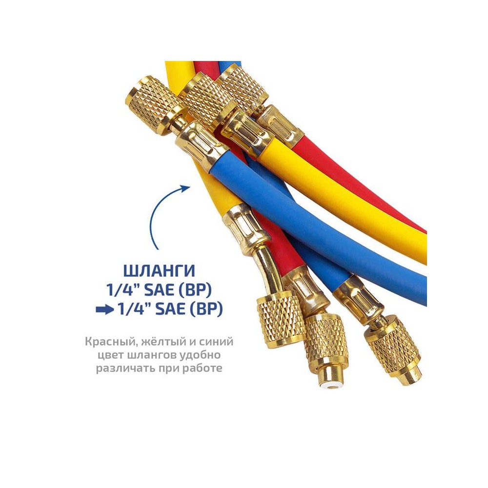 - Шланги 1/4” SAE (ВР) => 1/4” SAE (ВР): синий, красный, желтый - по1 шт.