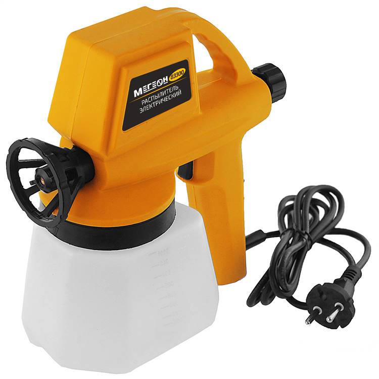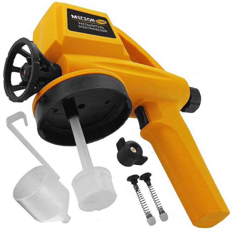 1. Распылитель электрический МЕГЕОН 83300 – 1 шт.2. Вискозиметр -1 шт.3. Запасное сопло - 1 шт.4. Запасной клапан в сборе - 2 шт.5. Руководство по эксплуатации – 1экз.6. Гарантийный талон – 1 экз.Технические характеристики МЕГЕОН 83300