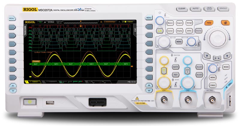 Цифровой осциллограф Rigol MSO2072A-S отличают низкий уровень шума, расширенные возможности по запуску, возможность синхронизации и декодирования сигналов последовательных шин (I²C, RS-232, SPI и др.).