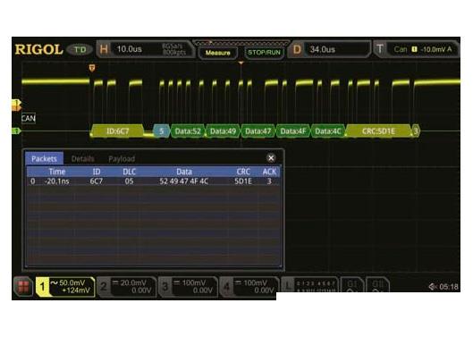 Опция анализа и запуска по шинам CAN и LIN MSO5000-AUTO для осциллографов Rigol серии MSO5000.