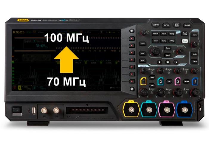 Опция MSO5000-BW0T1 позволяет увеличить полосу пропускания осциллографов Rigol серии MSO5000 с 70 МГц до 100 МГц.