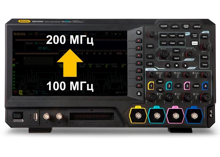 Опция MSO5000-BW1T2 позволяет увеличить полосу пропускания осциллографов Rigol серии MSO5000 со 100 МГц до 200 МГц.