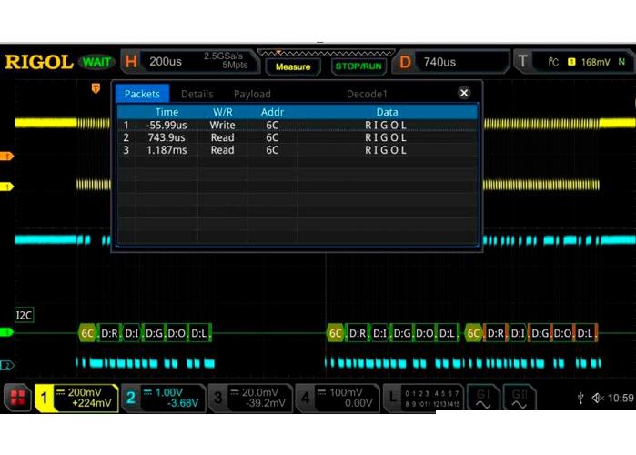 Опция MSO8000-EMBD добавляет в осциллографы Rigol серии MSO8000 возможность декодирования и запуска по сигналам шин I²C и SPI.
