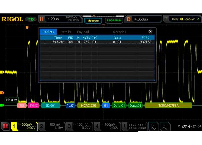 Опция MSO8000-AUTO добавляет в осциллографы Rigol серии MSO8000 возможность декодирования и запуска по сигналам шин FlexRay.
