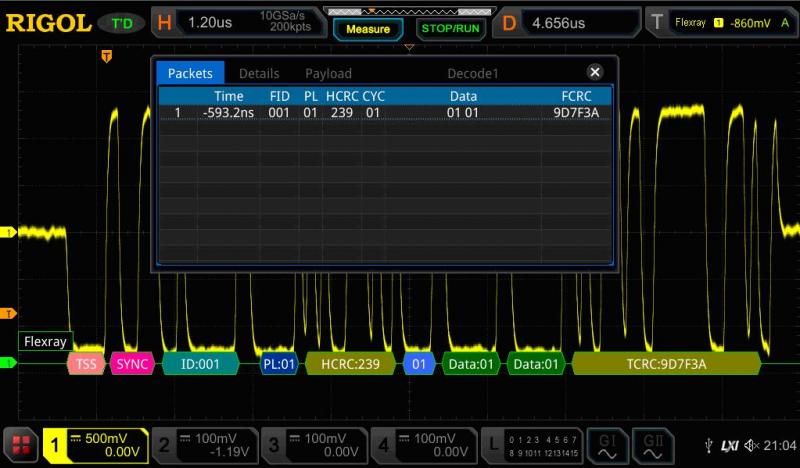 Опция MSO8000-AUTO добавляет в осциллографы Rigol серии MSO8000 возможность декодирования и запуска по сигналам шин FlexRay.