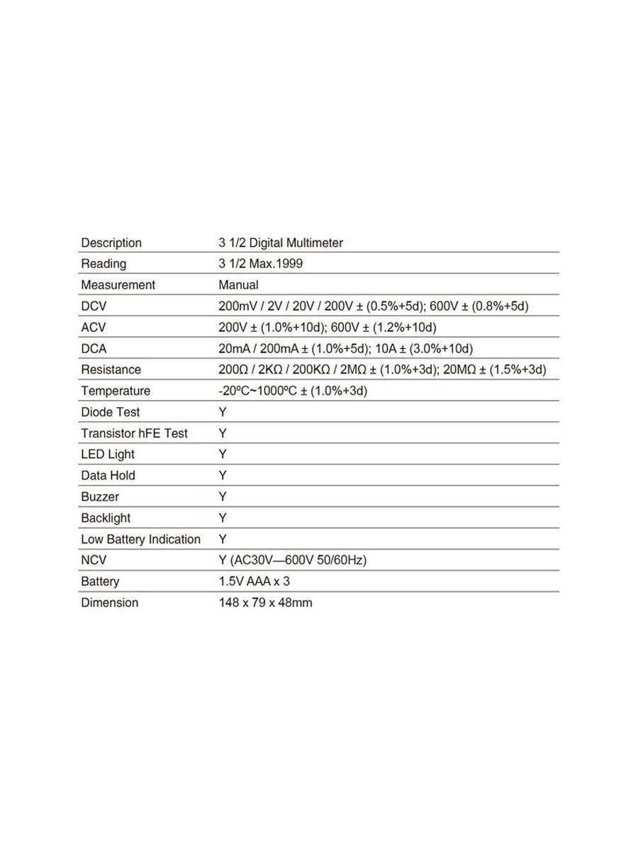 Разработан для безопасного и точного устранения различных проблем с автомобильными и бытовыми электрическими цепями. Защита от перегрузки обеспечивает срок службы счетчика и безопасность пользователя!