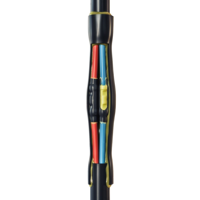 - Муфта имеет два контура герметичности, представленных клеевыми термоусаживаемыми трубками для изоляции контактных соединений и общей трубкой восстановления оболочки кабеля
