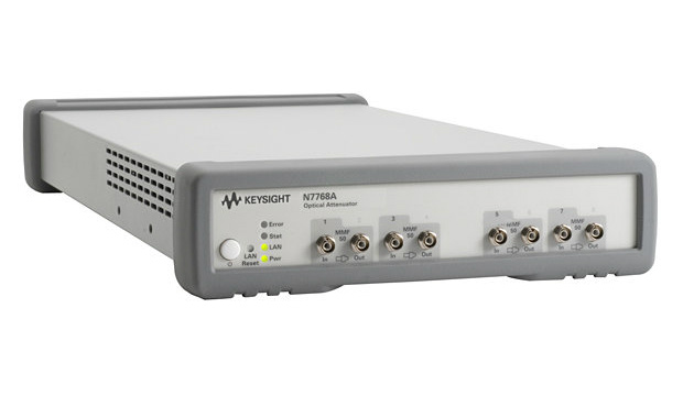 Оптические аттенюаторы используются для гибкого контроля уровня оптических сигналов в процессе тестирования. Основной областью применения оптических аттенюаторов является определение чувствительности оптических приемников путем измерения зависимости коэффициента битовых ошибок от мощности входного сигнала. Оптические аттенюаторы N7766A и N7768A имеют соответственно два или четыре канала, которые могут оснащаться портами, рассчитанными на использование многомодового оптоволокна диаметром 50 мкм, 62,5 мкм или 80 мкм. Для обеспечения точной и стабильной настройки мощности вне зависимости от входной мощности осуществляется непрерывный контроль уровня мощности выходного сигнала. Удобная настройка параметров смещения позволяет устанавливать уровень мощности, соответствующий сигналу после прохождения других оптических компонентов в устройстве.