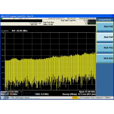 - Эмуляция работы анализаторов спектра FSP, FSU и FSE в режиме дистанционного управления с использованием наиболее часто употребляемых команд, необходимых для выполнения основных функций по анализу спектра; не поддерживает функции, не относящиеся к базовому режиму анализа спектра