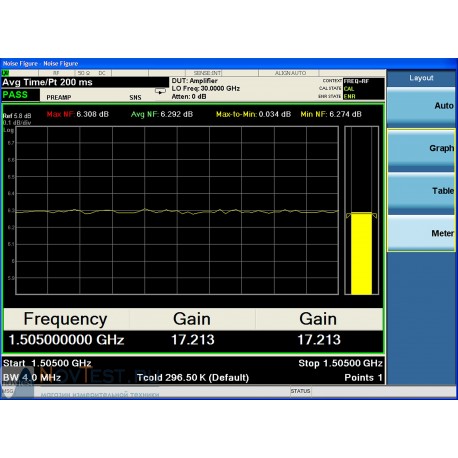 - Измерение коэффициента шума и коэффициента усиления приемников и их компонентов и представление результатов измерений в графическом и табличном виде, а также в режиме отображения отдельных значений