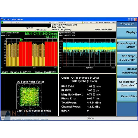 - Измерение мощности в слоте, мощности в физическом канале с произвольным доступом, фазы в слоте, ошибки фазы, ошибки частоты, модуля вектора ошибок в восходящем канале, а также скачков фазы.