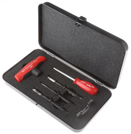 Набор динамометрических инструментов с Т-образной рукояткой TorqueVario-STplus. С универсальным держателем бит, 6 бит Standard TORX®/шестигранник и 2 переходных жала для торцевого ключа.
