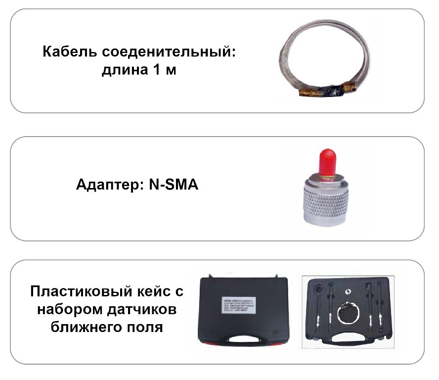 Набор ЭМС для анализаторов спектра: пробник магнитного поля - 4 шт., кабель SMA-SMA, адаптер N-SMA. Диапазон частот: 30 МГц - 3 ГГц.