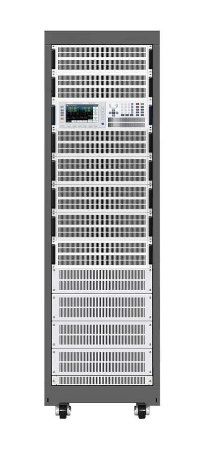 Программируемая электронная нагрузка постоянного и переменного тока. Постоянный/переменный ток до 160 А/ 160 Аскз (420 Апик), постоянное/переменное напряжение 10…600 В/ 50…420 Вскз (360 Впик), диапазон частот 45…450 Гц, мощность до 14,4 кВт. Четыре режима нагрузки: постоянное напряжение (CV), постоянное сопротивление (CR), постоянная мощность (CP) и постоянный ток (СС) с изменяемым коэффициентом амплитуды и коэффициентом мощности. Режимы защиты: от перегрева (OTP), перегрузки по току (ОСР), по напряжению (OVP), по мощности (OPP) и от пониженного напряжения (UVP). Измерение и одновременная индикация Vrms, Vpk, Vdc, Irms, Ipk, Idc, W, VA, VAR, CF, PF. Внешнее аналоговое управление и мониторинг. 4-проводная схема подключения. Возможность объединения трех моделей для тестирования 3фазных сетей. Цветной ЖК-дисплей с функцией отображения формы сигнала. Интерфейсы: GPIB, USB, LAN. Габариты (ш х в х г): 550 х 1869 х 800 мм. Монтаж в стойку 37U.