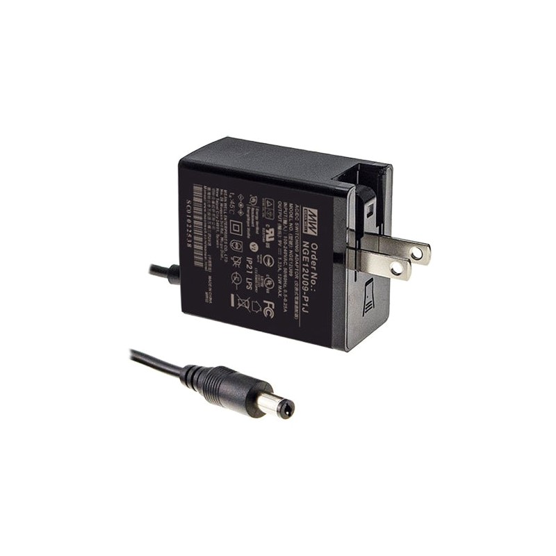 AC-DC адаптер настен., медицин., пром. 12Вт, вход 80...264B AC 47...63 Гц, 113...370B DC, выход 12В/1.0A, 48x28x55мм, -30...+70°С, сертиф.2xMOPP/ CCC /BSMI/ PSE, оснащен Американской откидной вилкой АС, выходной разъем 11, диам. 5.5х2.1мм