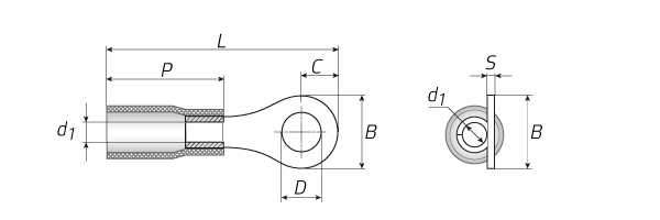 - поперечные засечки на внутренней поверхности трубной части наконечников увеличивают механическую прочность соединения с жилой