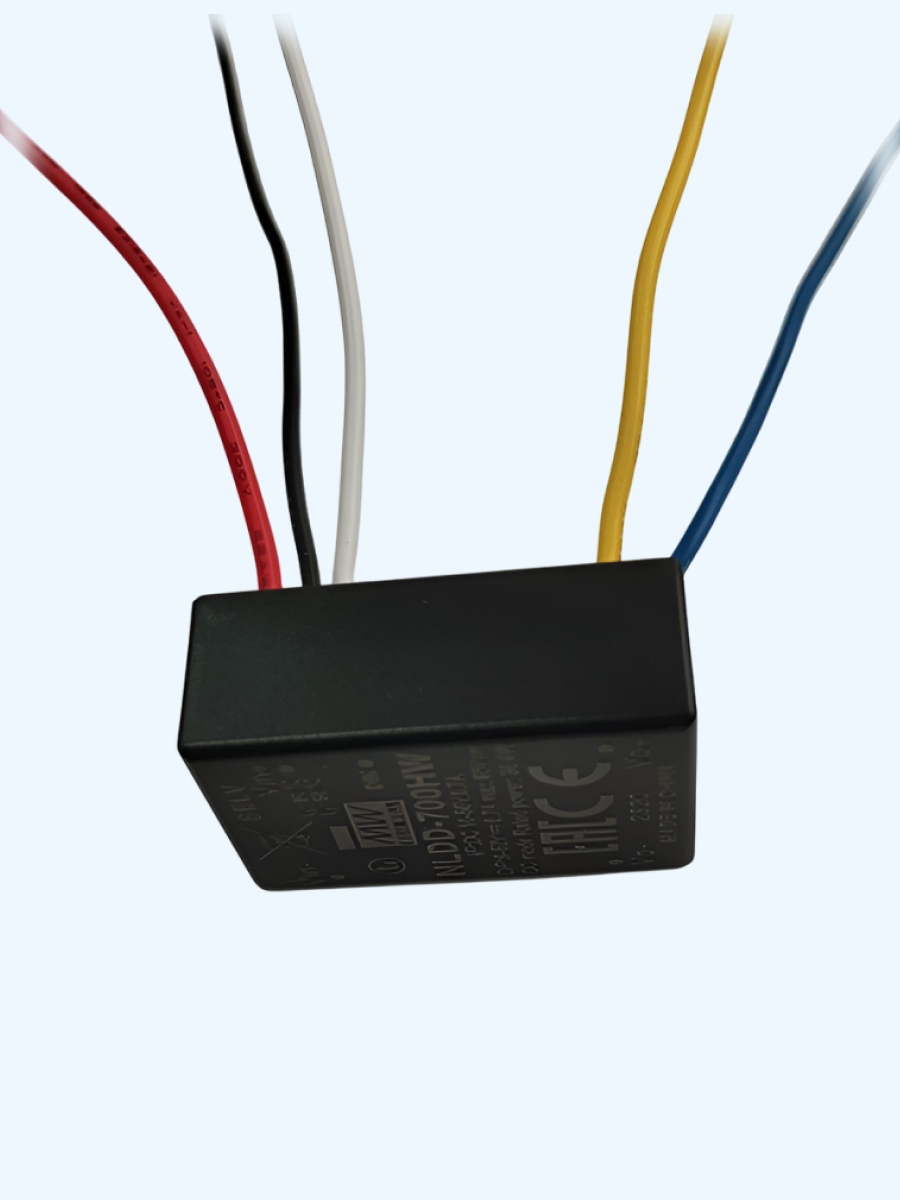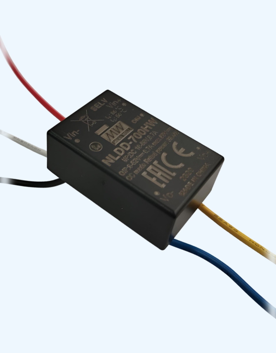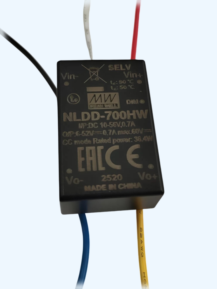 DC-DC драйвер светодиодов, 60Вт, вход 10…56В DC, выход 700мА/6…52В, дист. упр. питанием и ШИМ димминг, пластиковый герметичный корпус 32.1x20.5x12.5мм, проводные выводы, -40…+50°С