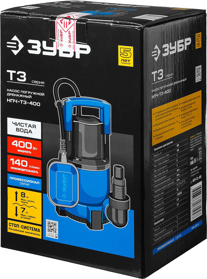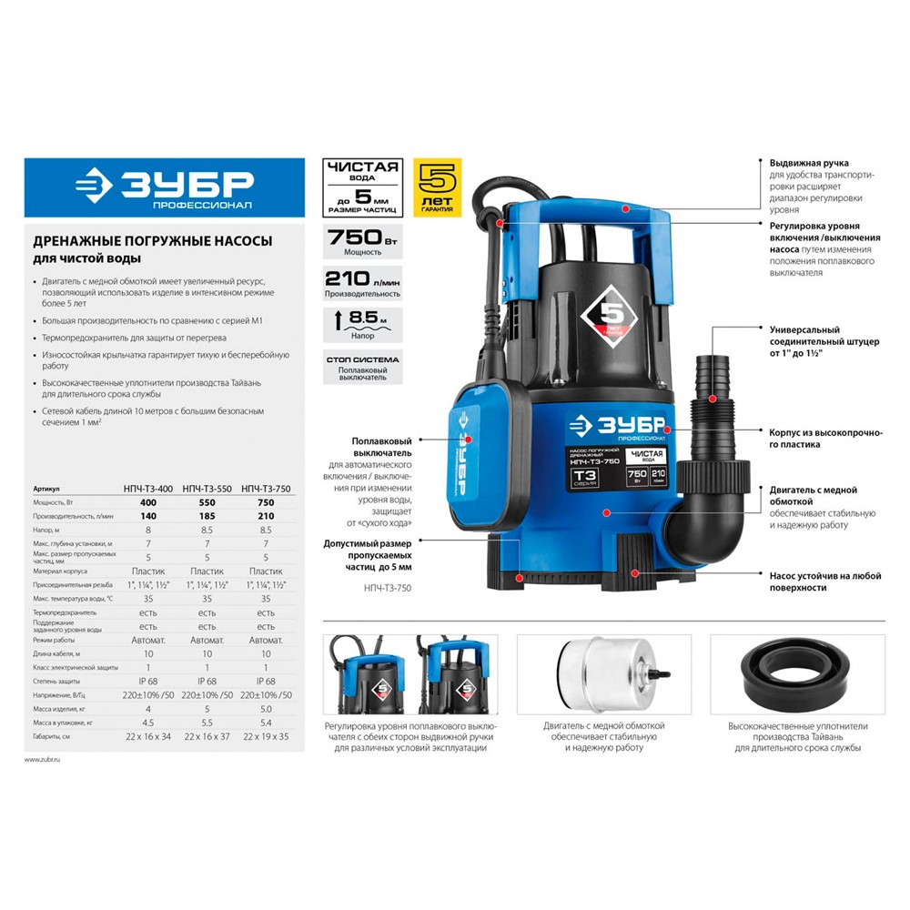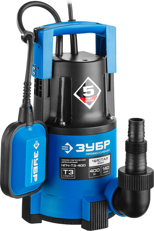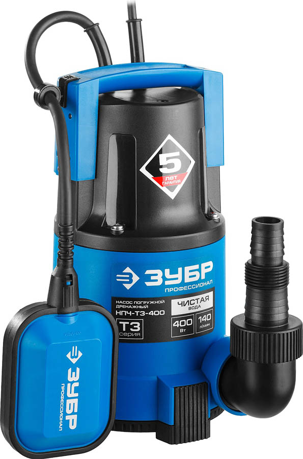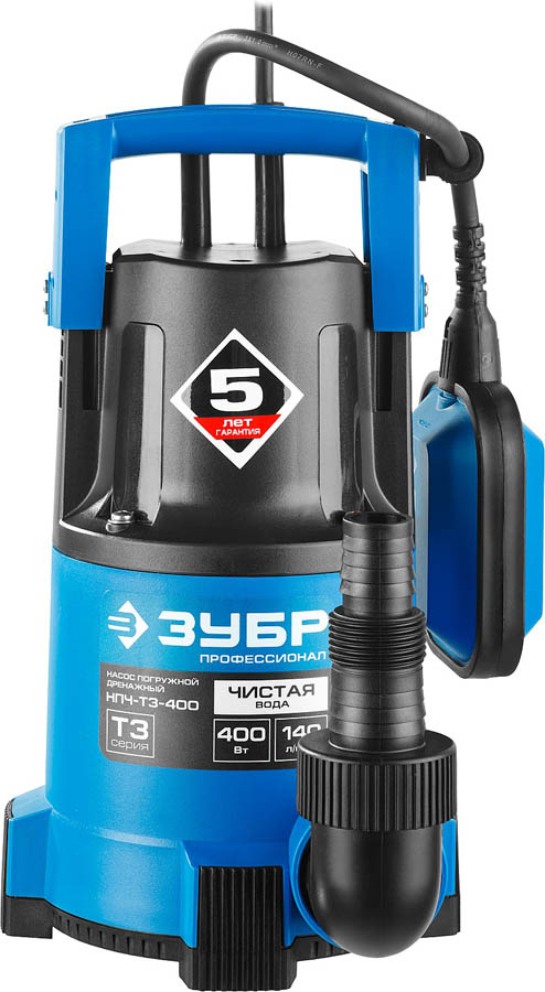 ЗУБР Профессионал НПЧ-Т3-400 дренажный насос с минимальным уровнем откачки, 400 Вт