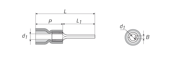 • поперечные засечки на внутренней поверхности трубной части наконечников увеличивают механическую прочность соединения с жилой