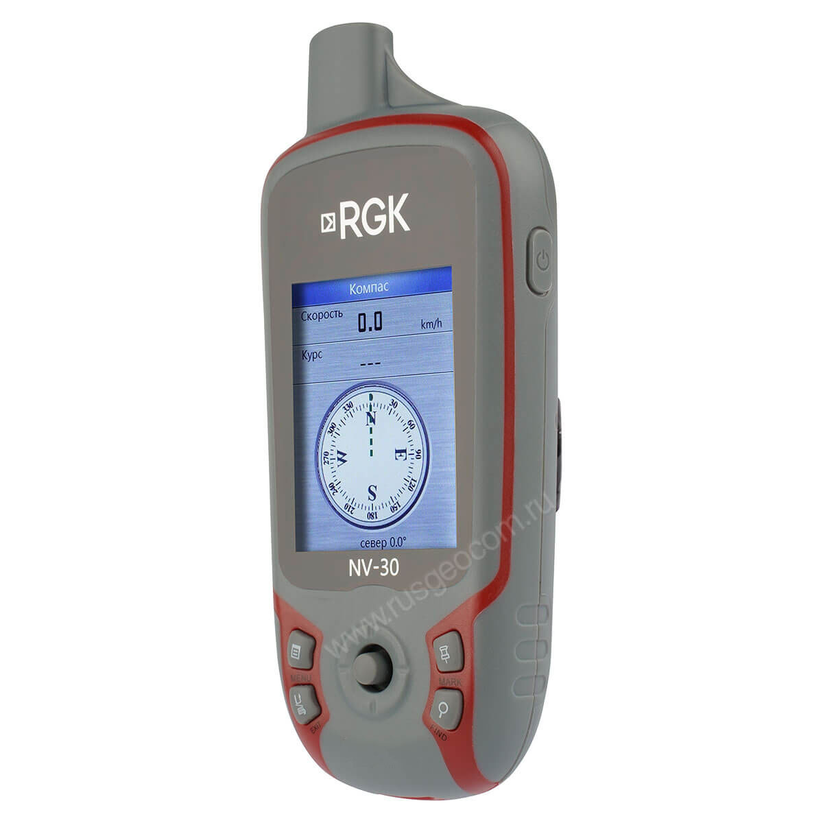 Электронный компас туристического навигатора RGK NV-30, в отличие от более простых решений, имеет компенсацию наклона и не требует от пользователя движения для достоверного указания направления, что упрощает ориентирование на местности.