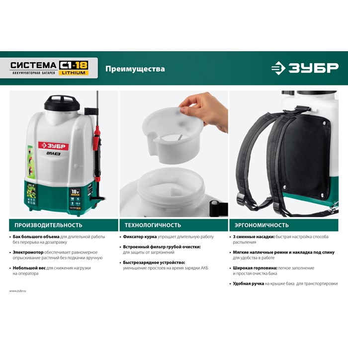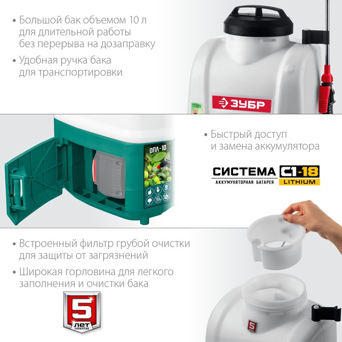 Опрыскиватель аккумуляторный Li-IonОПЛ-10 Зубр