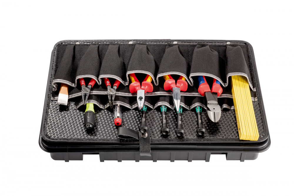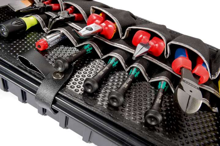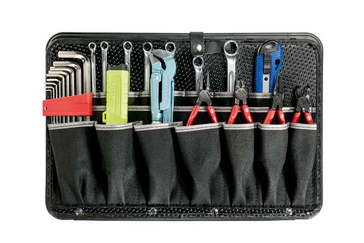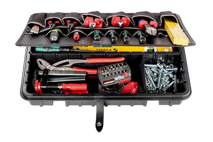 Высококачественный нижний отсек из ABS пластика чёрного цвета добавляет в инструментальный чемодан больше порядка. Принадлежности и инструменты аккуратно раскладываются и переносятся в любом из 15 отделений.