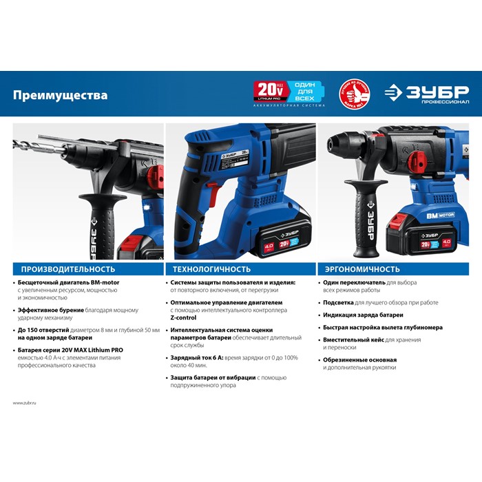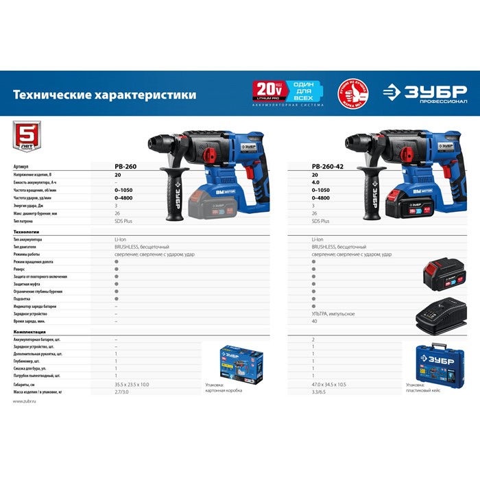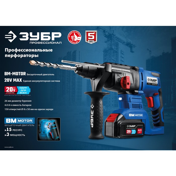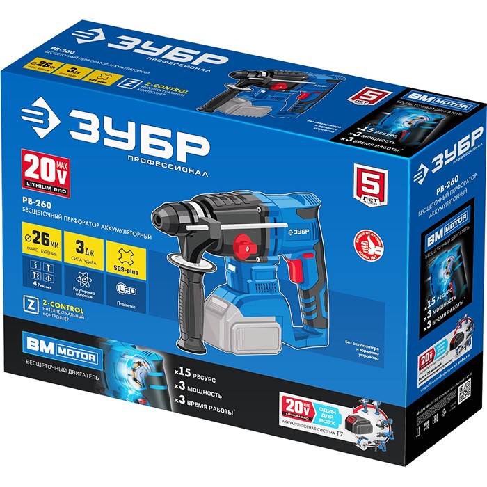 Бесщеточный перфоратор, без АКБ, в коробке PB-260 Зубр