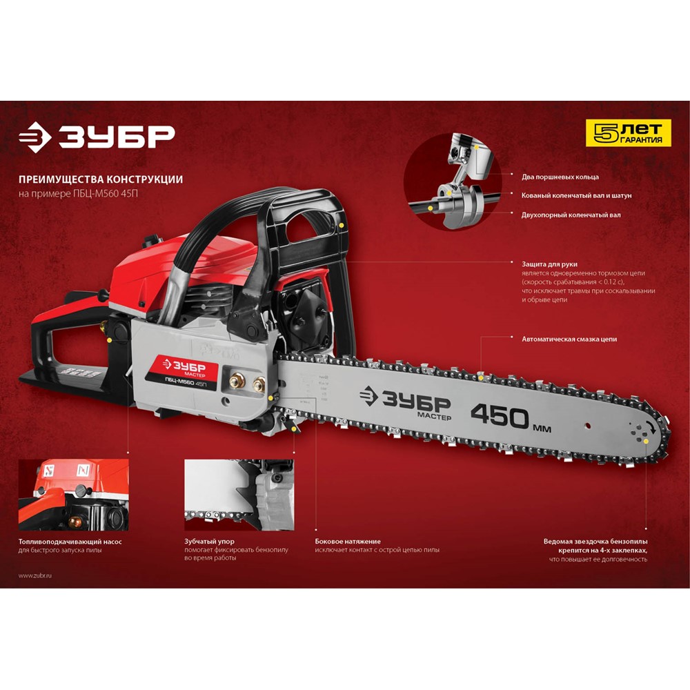 Бензопила ЗУБР ПБЦ-М370 35П, предназначена для пиления досок, бруса, стволов различных пород дерева (с приводом режущего инструмента от двигателя внутреннего сгорания). Изделие предназначено для эксплуатации только вне помещений. Насос подкачки топлива способствует более легкому запуску, даже в холодную погоду. Продуманная виброгасительная система, очень эффективна при длительном пилении. Электронная система зажигания обеспечивает ровную, экономичную и экологичную работу двигателя. Насос принудительной подачи смазки к цепи уменьшает износ, что увеличивает срок службы цепи и шины. Тормоз мгновенного действия обеспечивает высокую безопасность работ, мгновенно останавливая пильную цепь в случае опасности. Система предварительной очистки воздуха удаляет из входного воздуха наиболее крупные частицы и увеличивает срок службы фильтра. Удобная эргономичная рукоятка. Емкость для смешивания в комплекте.
