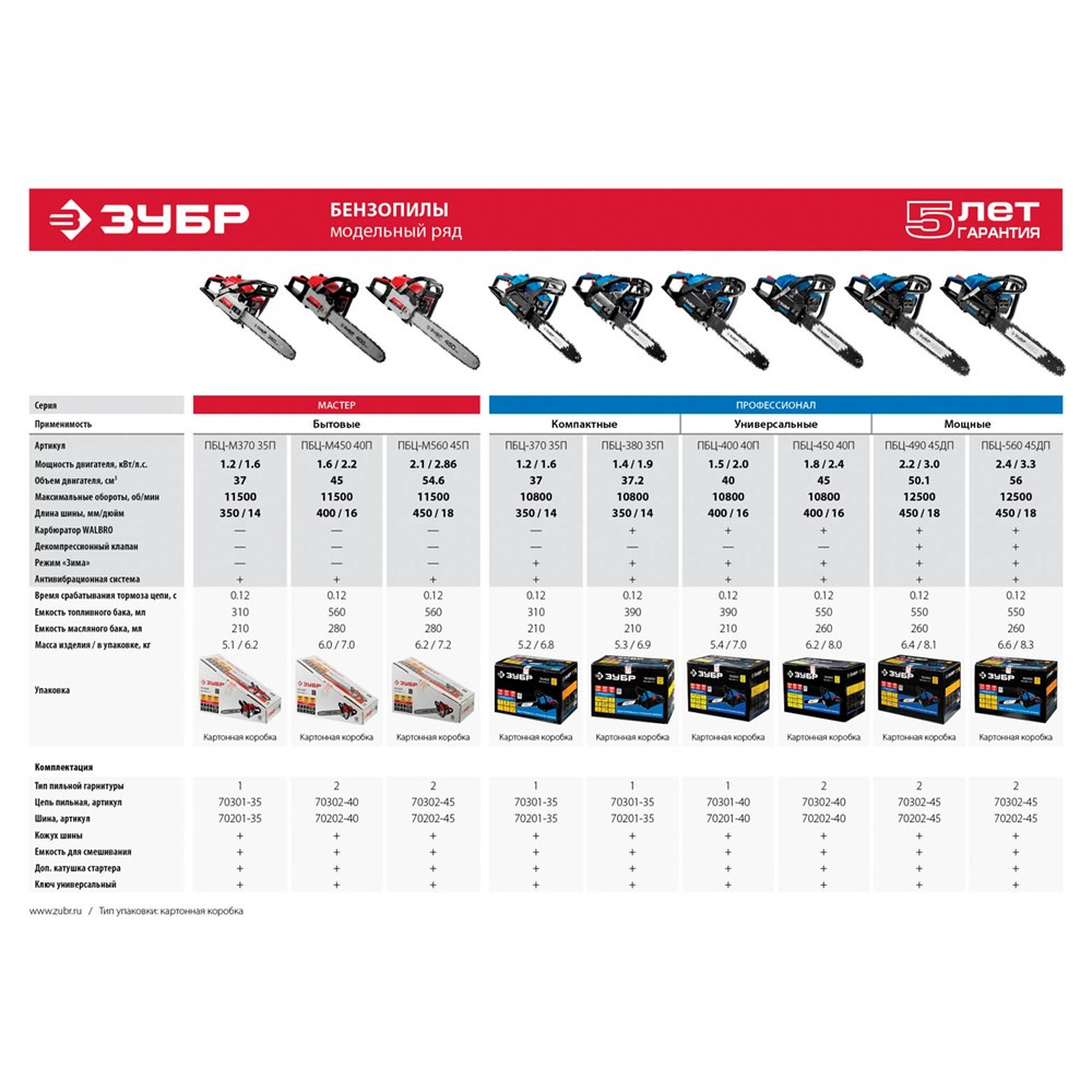 Пила цепная бензиновая ЗУБР ПБЦ-М450 40П, предназначена для периодических работ на приусадебном участке: спил старых деревьев, удаление разросшихся ветвей, заготовка дров и т. п. Повышенная мощность при компактных размерах. Насос подкачки топлива способствует более легкому запуску, даже в холодную погоду. Продуманная виброгасительная система, очень эффективна при длительном пилении. Электронная система зажигания обеспечивает ровную, экономичную и экологичную работу двигателя. Насос принудительной подачи смазки к цепи уменьшает износ, что увеличивает срок службы цепи и шины. Тормоз мгновенного действия обеспечивает высокую безопасность работ, мгновенно останавливая пильную цепь в случае опасности. Система предварительной очистки воздуха удаляет из входного воздуха наиболее крупные частицы и увеличивает срок службы фильтра. Удобная эргономичная рукоятка.