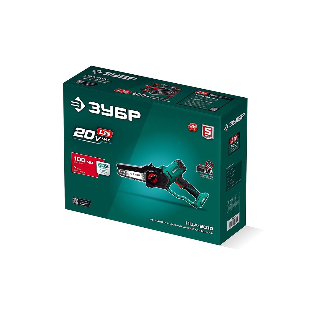 ЗУБР 20 В, 100 мм шина, без АКБ (LMS), мини-пила цепная аккумуляторная (ПЦА-2010)