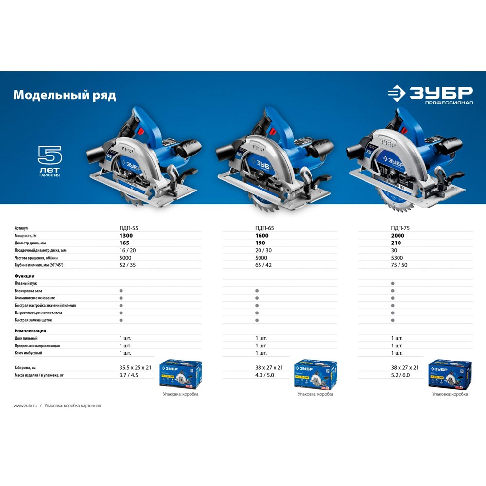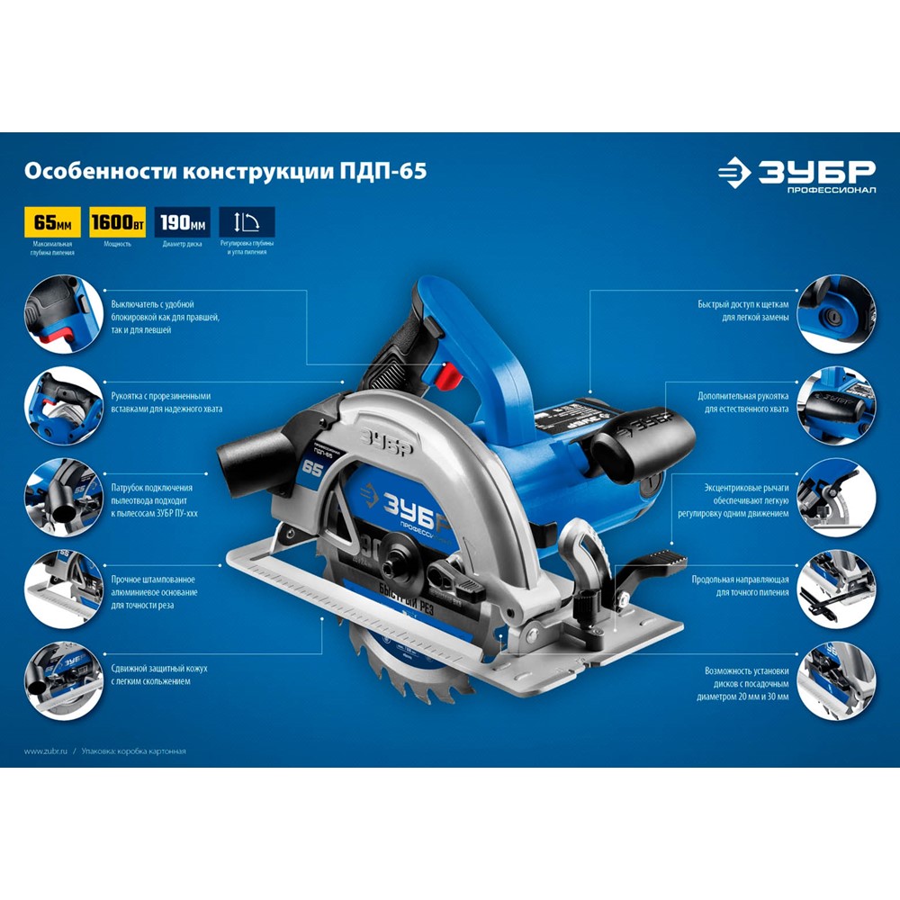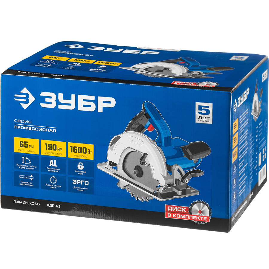 Пила дисковая, 90°-65 мм, диск 190 мм, 1600 Вт, ЗУБР Профессионал