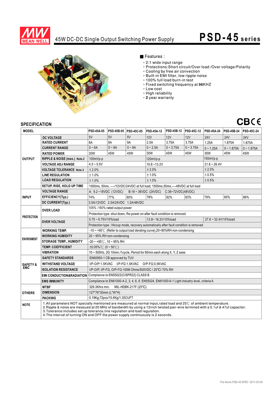 Преобразователь DC/DC Mean Well PSD-45C-05 45Вт