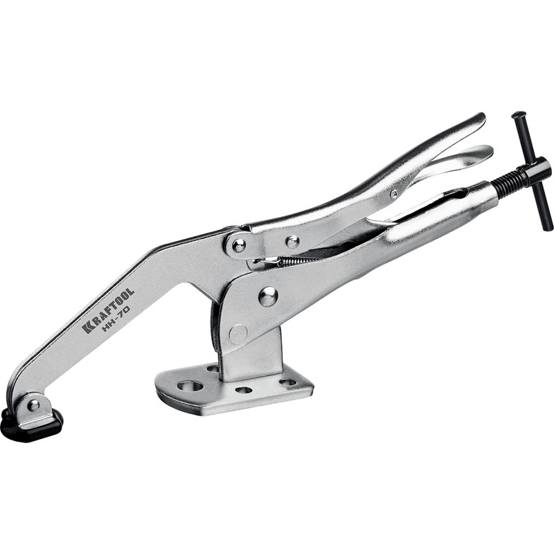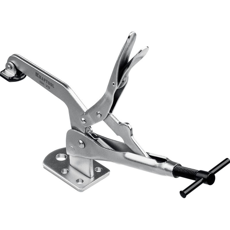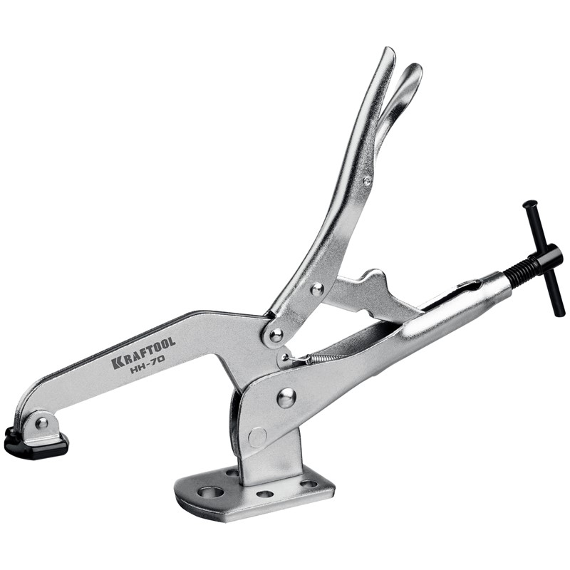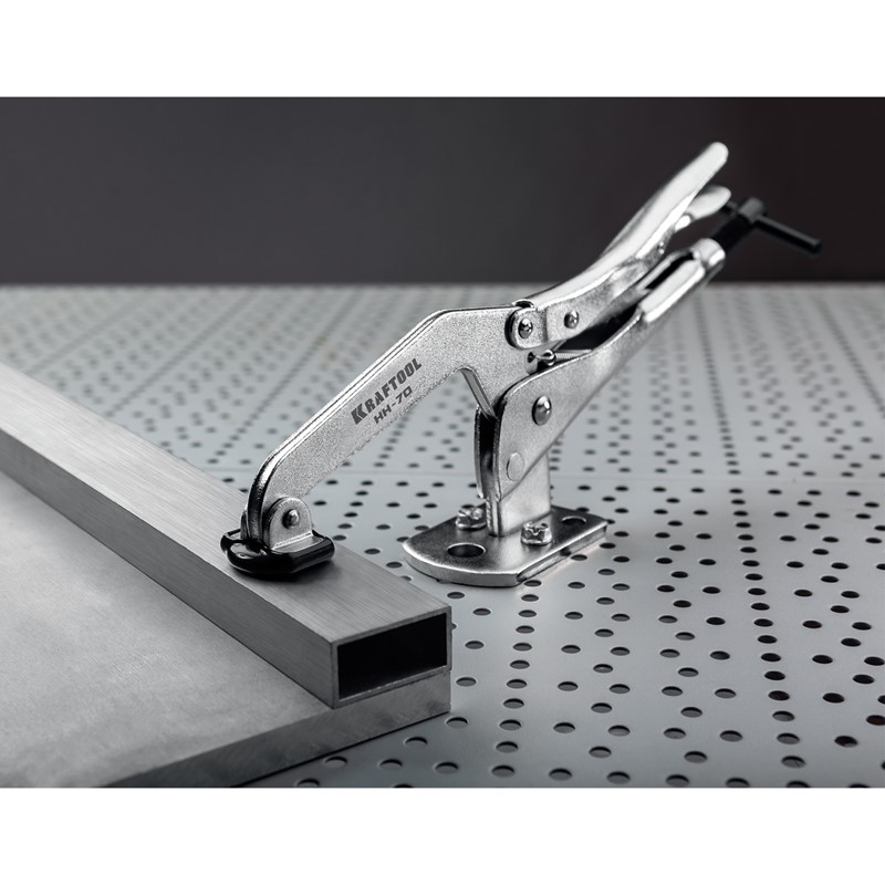 Профессиональная быстрозажимная струбцина KRAFTOOL для сварочных, слесарных, столярных и других работ, где требуется бысрое и надежное крепление заготовок. Усиленная конструкция из прочной хроммолибденовой стали. Цельнокованая прижимная лапка. Прижимное усилие до 400 кгс. Обрезиненный наконечник для бережной фиксации мягких заготовок. Инновационная система мгновенного снятия зажима. Система быстрой настройки толщины зажимаемой детали на всем диапазоне инструмента. Широкая площадка с пятью отверстиями для максимально надежной фиксации струбцины на рабочем столе.