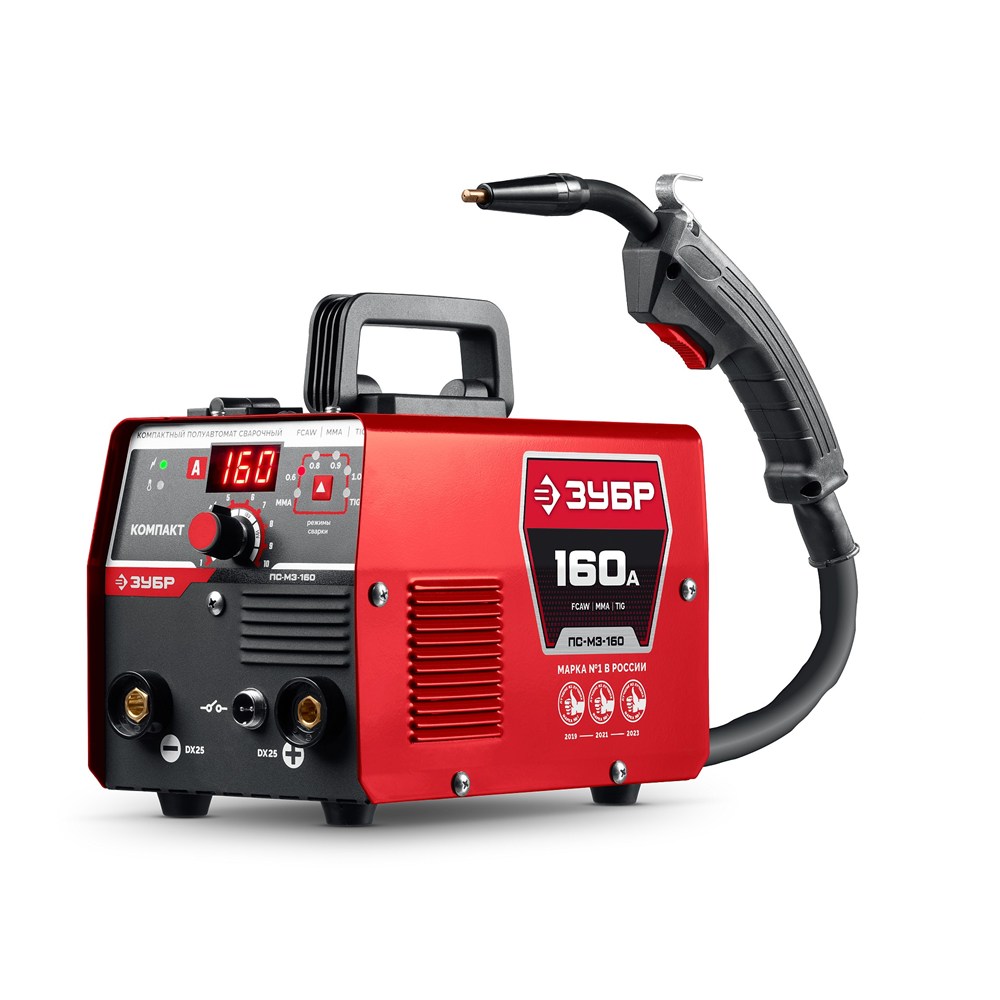 ЗУБР КОМПАКТ, FCAW, MMA, TIG, 160 А, полуавтомат сварочный, без газа, горелка ПС-160 (ПС-М3-160)